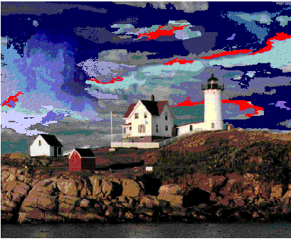 and by the warm flash from the lighthouse