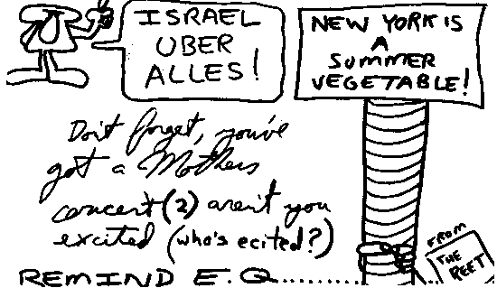 Rob Swerding and I hitchiked to California together the summer after graduation (summer 1970). We got picked up by the police in San Francisco cus a law was passed to detain anyone "under the age of 18 wihout adult guardianship in the state of Ca." Bob was turning 18 in a week, so they let him go and put me in juvenile jail till they could get my parents to fly me back to NY. Even tho my folks told the cops they knew i was there, they didnt care. So 2 days in jail and then i was taken, in handcuffs, to the airport and put on a plane. It was weird! So, back in NY I needed work..so my one of my relatives got me a job as an usher for the David Frost Show. Did that for a year and decided it was time for college.- Reet